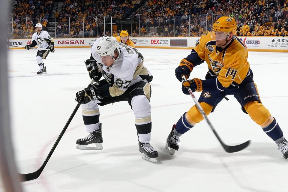 Nashville Predators (beat Anaheim Ducks in six) versus Pittsburgh Penguins (beat Ottawa Senators in seven)